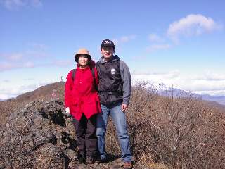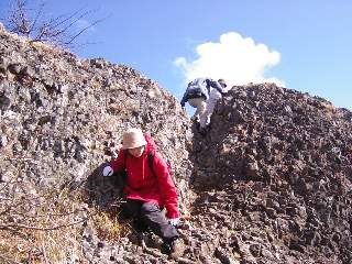 その4 もう少し行くと岩!これが物見岩ですね。怖いけどこちらの方が景色がいいです。荒船山が目の前です。真下に神津牧場が見えます。 赤城、榛名、妙義、全部見えます。あれは前橋?高崎?こっちは軽井沢?自信がないです。 岩の上で渋川からのご夫婦とご一緒させていただきました。
