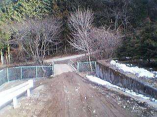 奥に見えるのが下りてきた林道。(通常は車で上ってきて路肩に車を停めるようです。) |