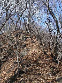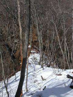 左からの横風が冷たいです。凍った所を避けて登ります。
