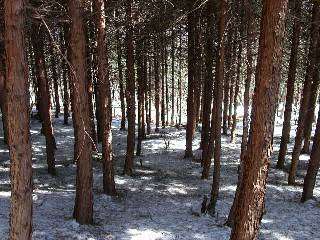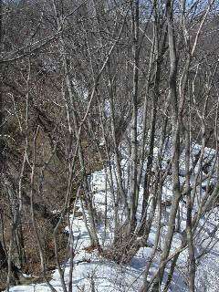 | さあ下山!コースは危ないので、赤テープを横目に雪のない所を歩きます。 | この辺はいいですが、後半ずっと凍った道を歩きます。 |
