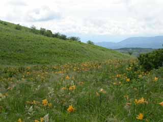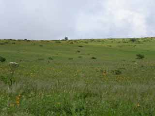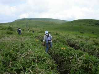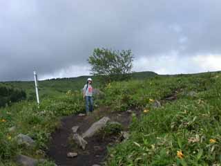 笹の道を蝶々深山へ。遠くに車山が見えます。