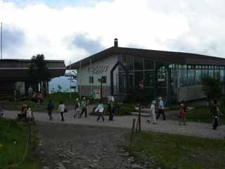 | 車山のリフト乗り場が見えてきました。 | 歩きにくい道を歩いて中継地点に着きました。結局駐車場に着いたのが3時過ぎでしたから5時間歩いたことになります。お疲れさまでした。 |