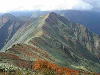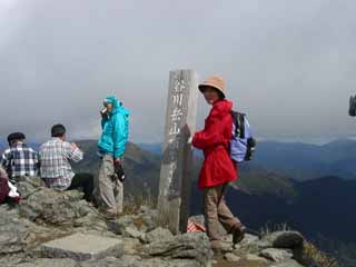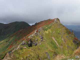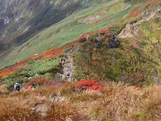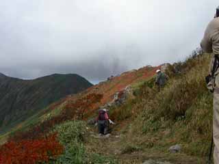 お昼を食べた後、12時頃、頂上をめざして出発しました。休むと疲れが出ます。でも今回は頂上まで行けてよかったです。なんてすばらしい紅葉の絶景です。日の光が差したところが最高です。早めに登った方は雲がかかっていて見られなかった様です。