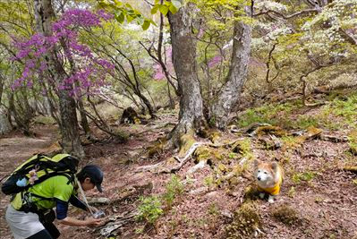 | トラベエさんちはおとぎの森の散策へ 13:50頃、そのまま時計回りで戻ることに変更 朝より日が当たりシロヤシオが輝いてる♪ |