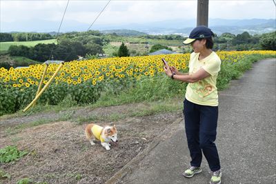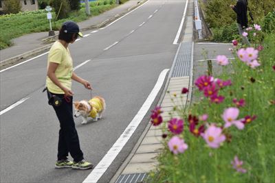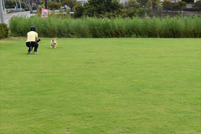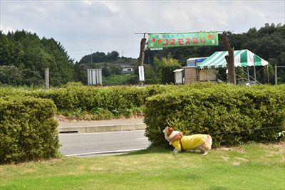 さくらは手前の芝生でゴロゴロしたけど、起き上がれなくてショック...