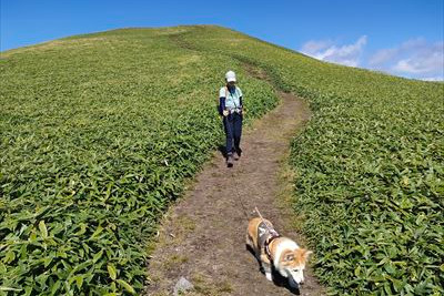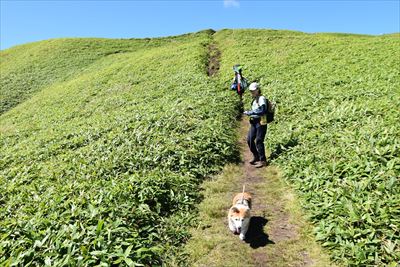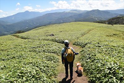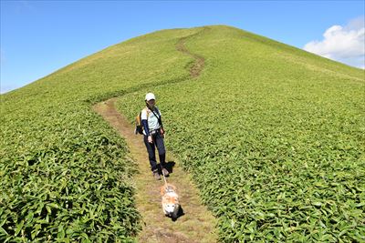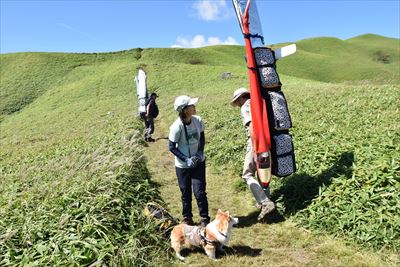 | 大きな荷物を担いだおじさんズ、毛無峠と同じくグライダースポットでした 特に今日は風がいいらしくサイズの大きいグライダーを持ってきたとかで大変みたい |