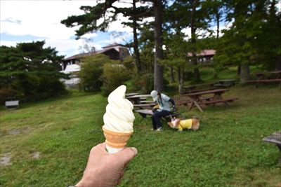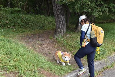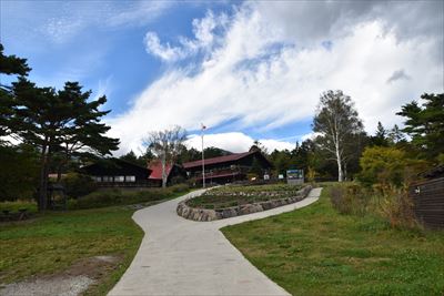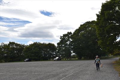 | 天気予報が外れ晴れ、暑い! 清泉寮のファームショップの駐車場に車で移動 ここから自然歩道を清泉寮経由で歩きます |