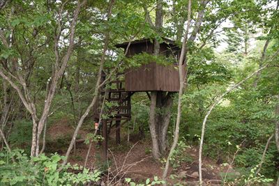| 左の自然歩道へ | ツリーハウスやブランコがあります |