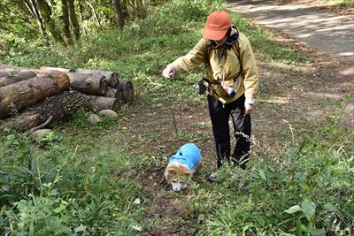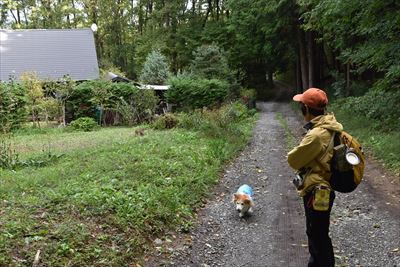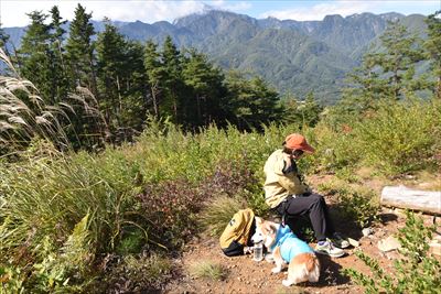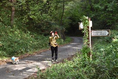 | 中山峠からハイキングスタート 結構急な坂でさくらは奥さんのサポートでなんとか登ります |