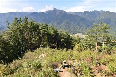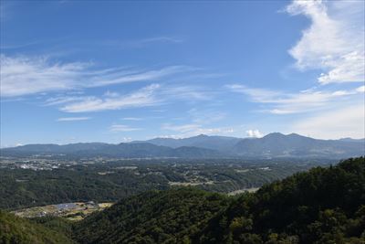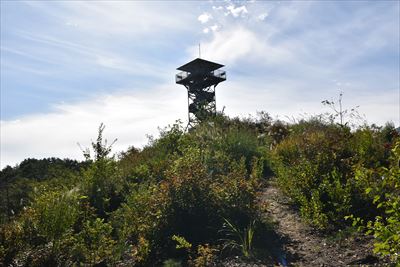 | 2日目の朝、荷物の片付け&積込みを済ませて中山展望台へ キャンプ場の裏山なので以前はキャンプ場から直接登れたようですが 整備不良で廃道らしいので中山峠からの往復です |