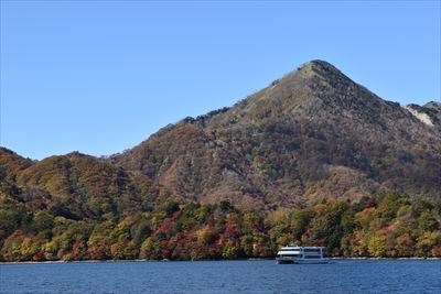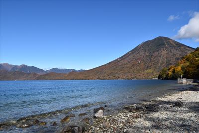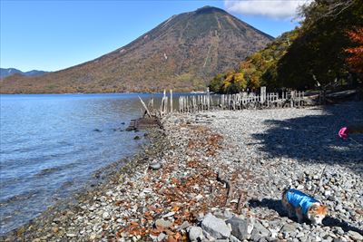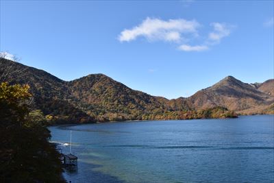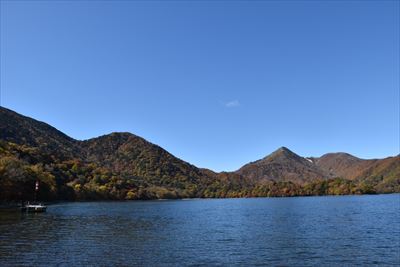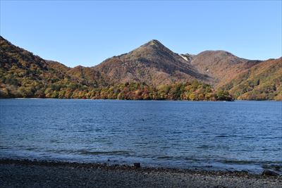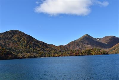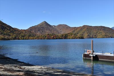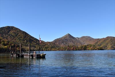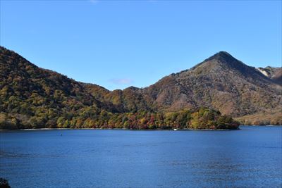 湖畔からだと八丁出島の形が分かりにくい