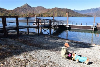 遊覧船の船着き場手前の日なたで休憩