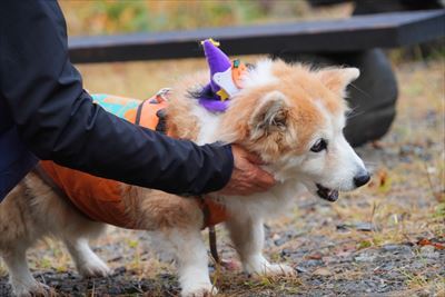 コーギー大好きかやまるさんはさくらをなでなで