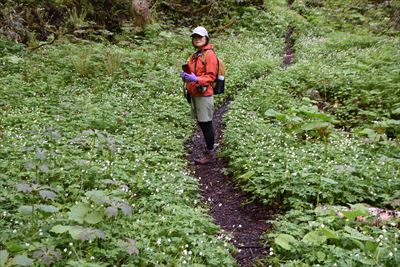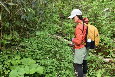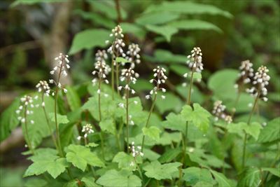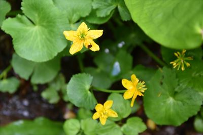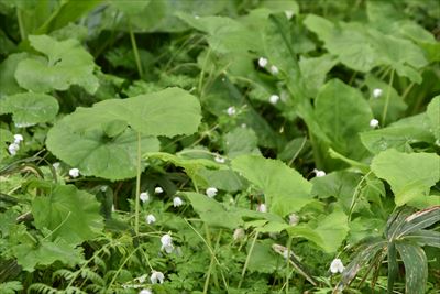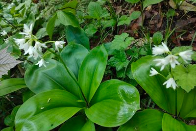 | 前日の雨でぬかるんだ山道を歩いていくと ズダヤクジュ、終わった水芭蕉、リュウキンカ... ツバメオモトがこれでもか!と咲いてます♪ |