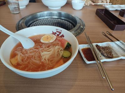 | 奥さんが冷麺食べたいというので小岩井近く通り沿いの「韓式食彩ヤマト」でランチ、手頃な値段のお店でした (手前の「焼肉・冷麺 三千里 雫石店」の方が人気?) 秋田駒ヶ岳の岩手側の登山口、国見温泉に移動、前から入ってみたかった「石塚旅館」で日帰り温泉 水木は宿泊不可日で清掃のためメインの薬師の湯は入れませんが内風呂と露天風呂は入浴可 緑色の温泉はなかなか強力でした 時間が早くて登山者が少ない時間だったので男風呂は貸切りとまではなりませんでしたが空いていてよかった |