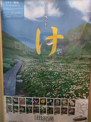 | いろいろ咲くから「け」のポスター、「け」は日本で一番短い「いらっしゃい」 ※食べなさいも「け」です(笑) | |