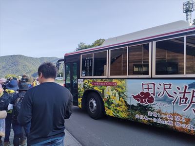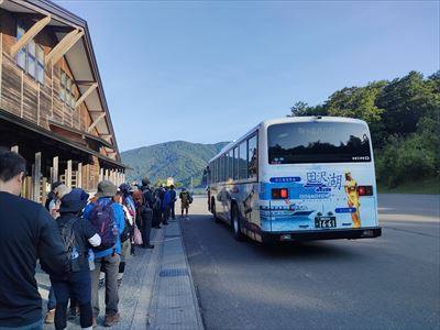 | 朝食後すぐに出発 アルパこまくさまでは車で5分なので始発に間に合いました 始発は満員、まあ2番バスでいいんだけどね(片道630円/人、Pay Payも使えるって時代だね〜) |