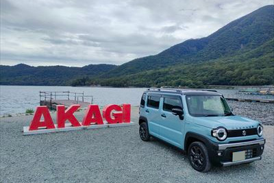 大沼湖畔のAKAGIモニュメントで新車の記念撮影