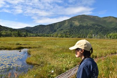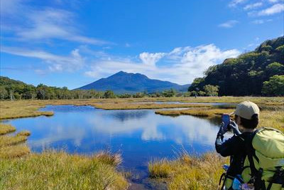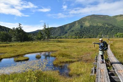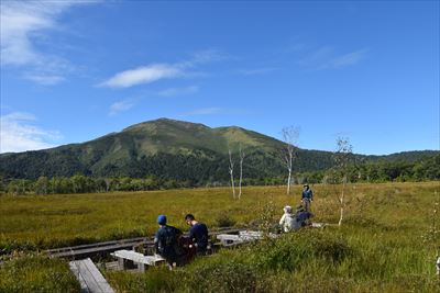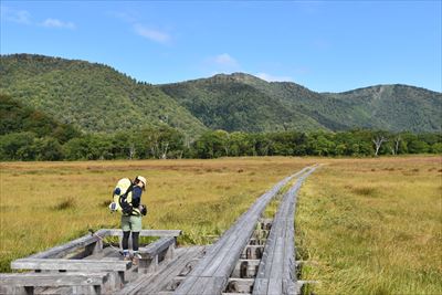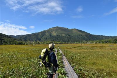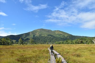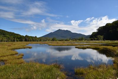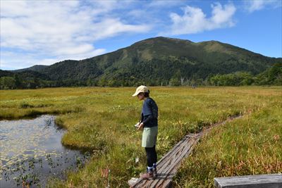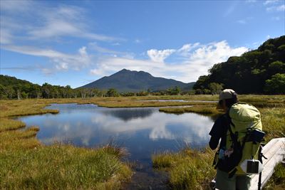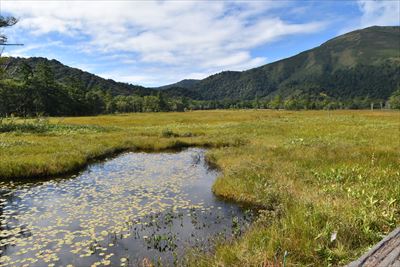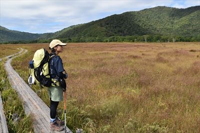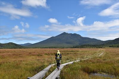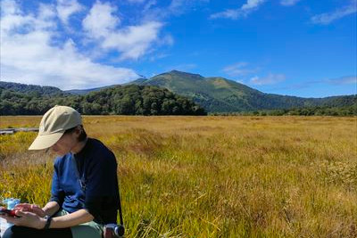 逆さ燧ケ岳と草紅葉と秋の空、最高です