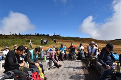 湿原の休憩ポイントは人が多いのとカップ麺の匂いで気持ち悪くなりそう...やっぱりかなり疲れてるなぁ