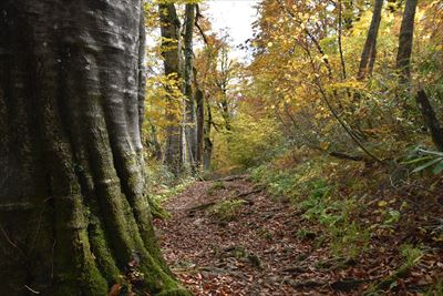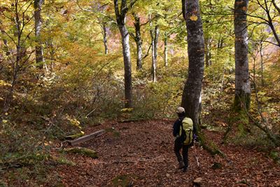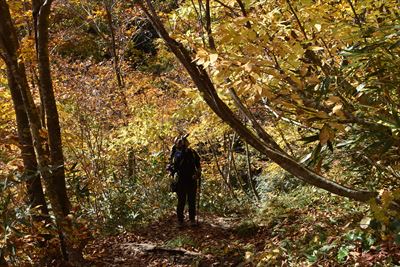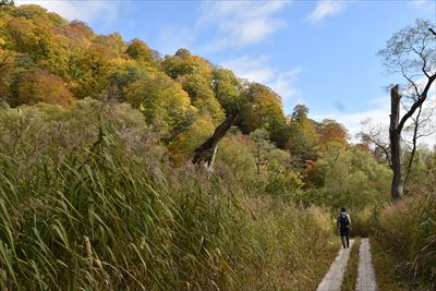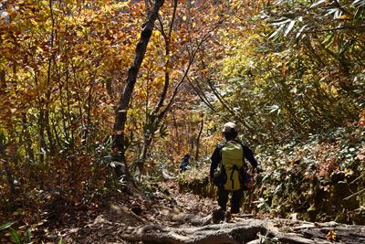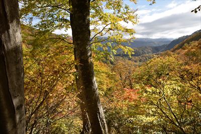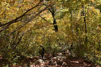 | どんどん下りましょう!晴れてブナ林が輝いてる♪ |
