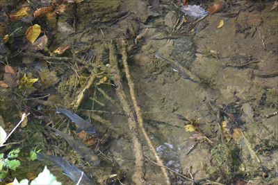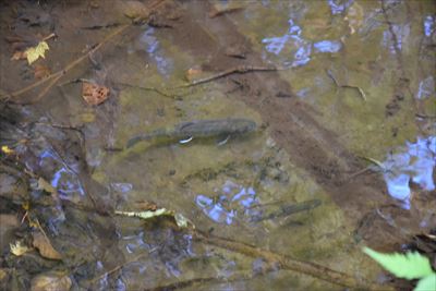| 岩魚(イワナ)がいっぱい泳いでいた(さすが肉食!カエルをくわえてた...) |