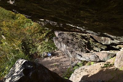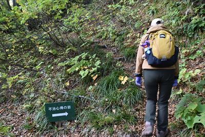 「不治心得の岩」に寄り道、悪天候時の雨宿りというか避難場所