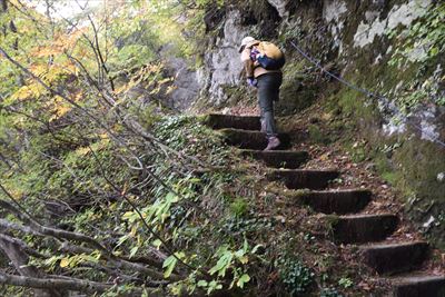 渓谷の遊歩道と勘違いする方がいるそうですが、山歩きの装備がいいですね