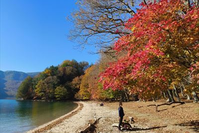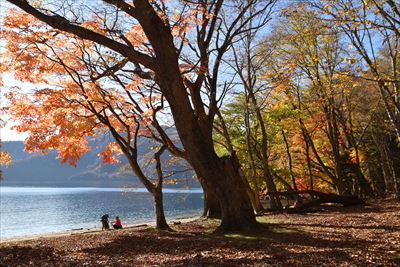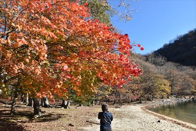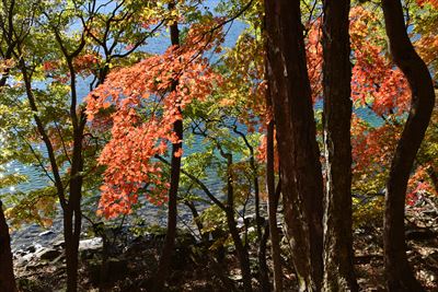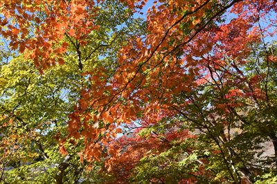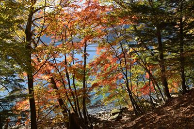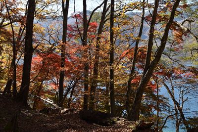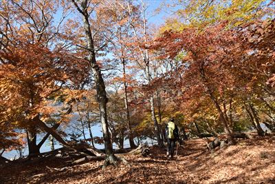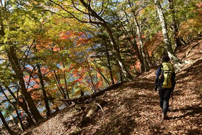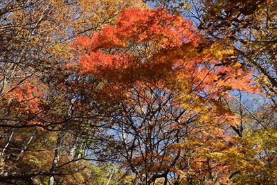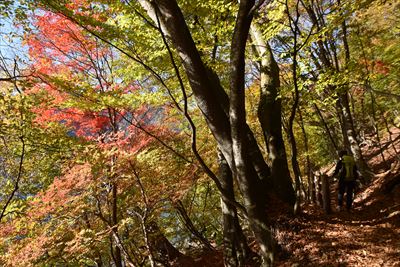 シロヤシオがたくさん咲く場所、あんまり赤く紅葉してなかった