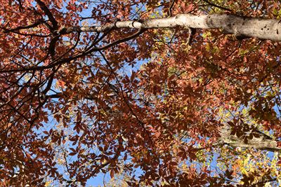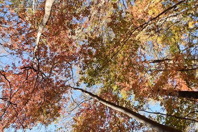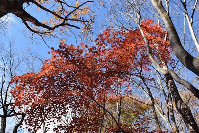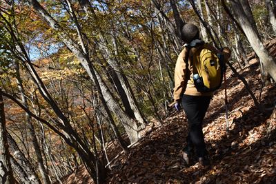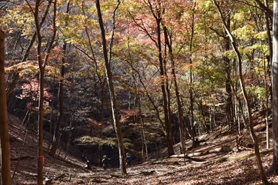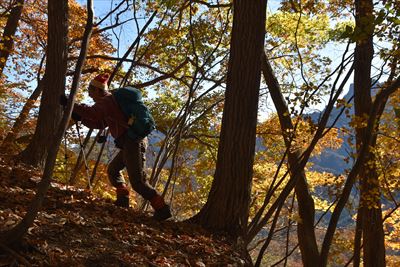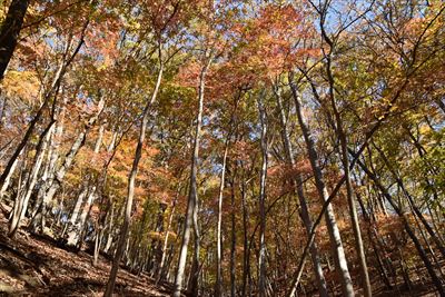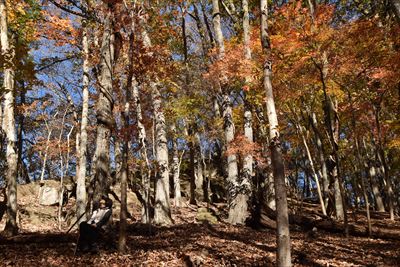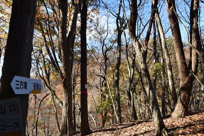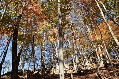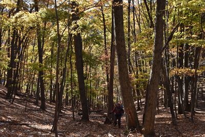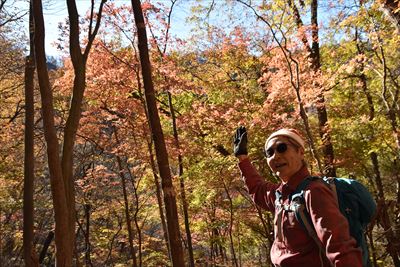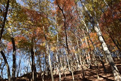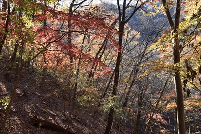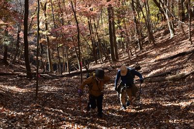 | いいゆさんがコースの右側を登ってなかなか戻って来ない... 途中で待つのをあきらめ、Fさんと3人で先に進みます 詳しいFさんにコハウチワカエデとかオオモミジとか教えてもらう(うちは「もみじ、かえで」で済ませてる...) |