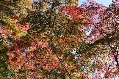 | いいゆさんが赤い紅葉を写しに戻ったので3人で先に進みます 第1もみじ谷はグリーン、グリーン(奥にいつ来ても赤い木) |