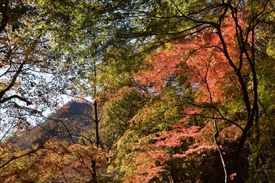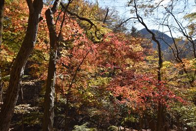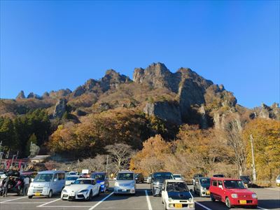 | 「もみじの湯」から妙義山 | 県立妙義公園第一駐車場から妙義山 葉の色が抜けてる?中間道の紅葉はどうだろう? |