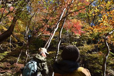 | 駐車場に戻ってびっくり!紅葉目的のハイカーの車でしょう、路駐がいっぱい!!! Fさん、またね〜 8年前から歩いてる裏妙義は思い出がいっぱい 奥さんともFさんとも道中はさくらと皆さんとの思い出話 |