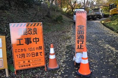 | 公園入口に駐車スペースがあったけど、道路の工事中で車で来られないみたい 公衆トイレに寄った後、歩きは大丈夫だろうと下りて行ったらダメそう... 工事の方にお願いして通していただきました。ありがとうございます。 |