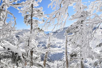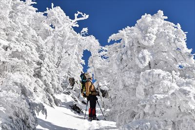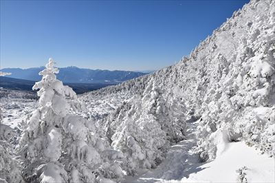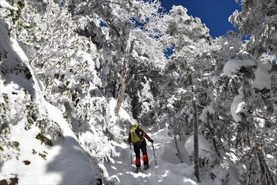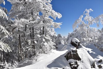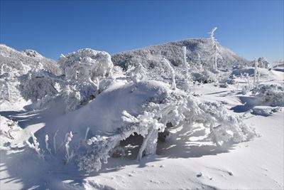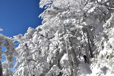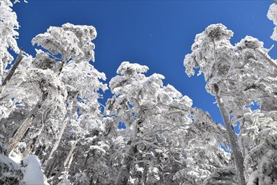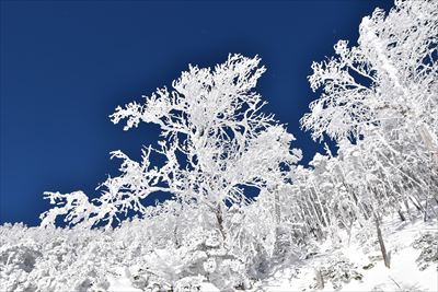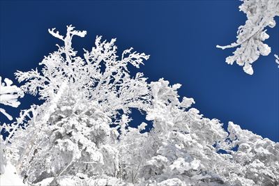 霧氷が凄過ぎて空の色が濃く写っちゃった!