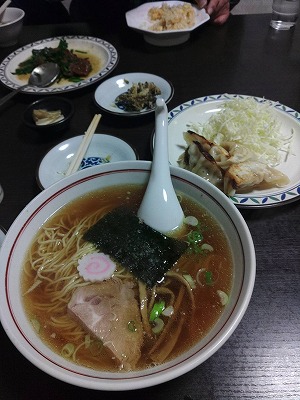 | 奥さんはラーメンと餃子のセット(セットは千円くらい) 野沢菜の天ぷらなどがおまけ | |
