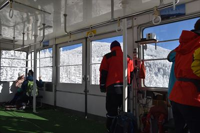 | 次の14時の便に乗車(登山道は一度ゲレンデを横切るんだ、とか確認しながら) |
