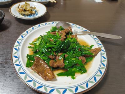 | ニラレバ炒めと炒飯(文字通りニラ&レバーだけで、もやしが入ってないのは珍しい) | |