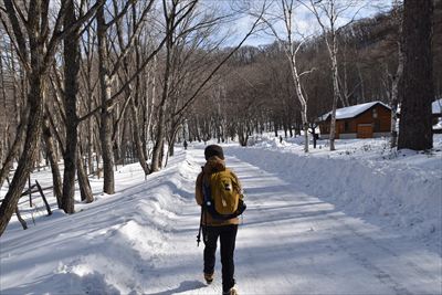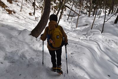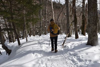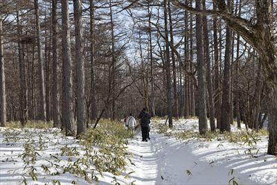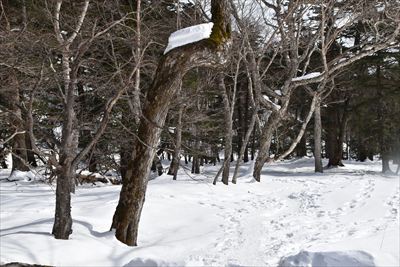 | 復路は楽々♪ (元気だったらスノーシューで遊ぶところでしょうが置いてきた...) |