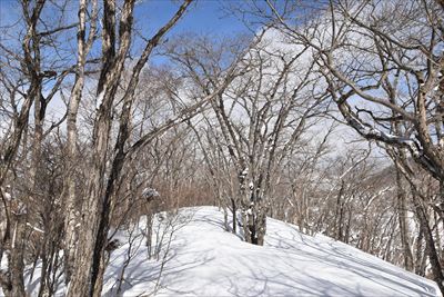 | 朝香嶺の山頂は尾根の途中、という感じの山頂 |