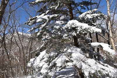 | いつもの鳥居から黒檜山方面、まだ荒れてるね | 左側の斜面をほぼ直登します |