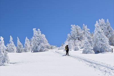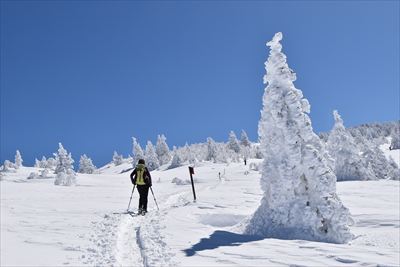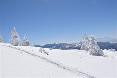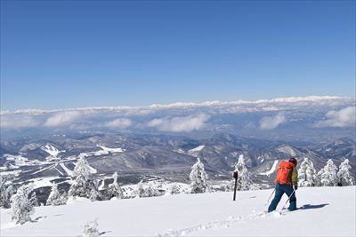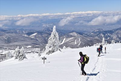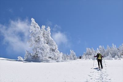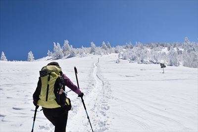 | 往きに小根子岳に行く人は少ないのか、BCの方だけ スタートが一緒だったご夫婦は旦那さんが不調みたいで小根子岳で休憩かな? |