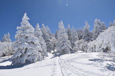 | それにしてもきれいだ♪ クリスマスツリーは霧氷というよりエビ尻尾の塊だね |