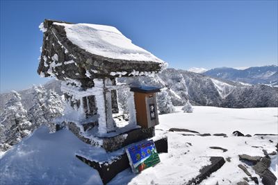| 花の百名山の手持ち山名板、見つからなかったという最近のレポがあったけど凍っててわからなかったのかな? |