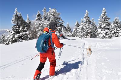 | 犬ぞりならぬ犬スキー? | |