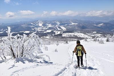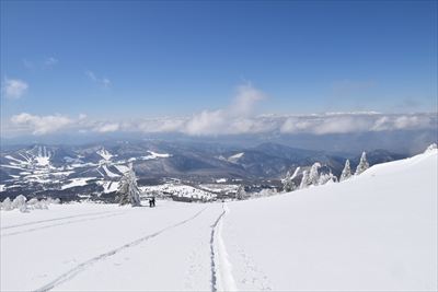 | リフトトップからは下山コースは特に決まってません、端っこを歩く、だけ 右側を下りましたが、左側の方がよかったみたいです |