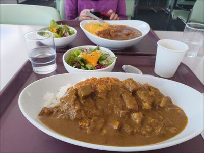 | レストランで2回目のランチ?ゲレ食はひさしぶりだなぁ 16時半までですがラストオーダーは15時、ぎりぎり間に合いました イチオシの山賊焼きラーメンはなかった、売り切れたのか今日はなかったのか? ふたりともがっつりメニュー、僕はカツカレー、奥さんはオムハヤシ |