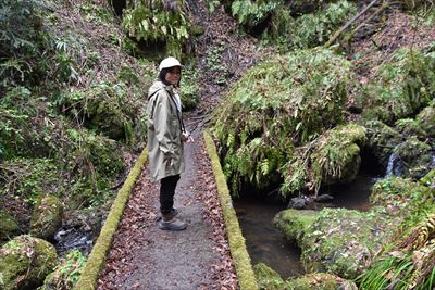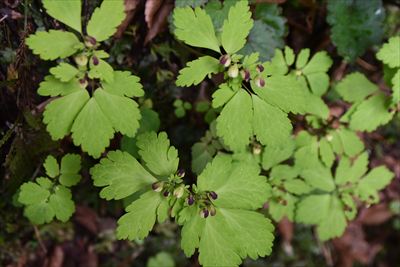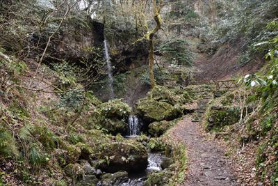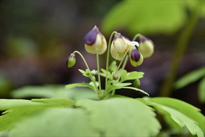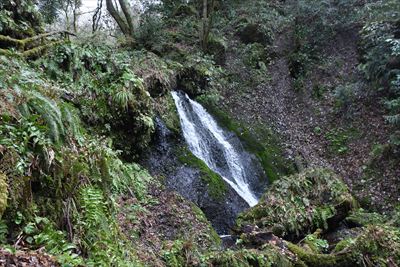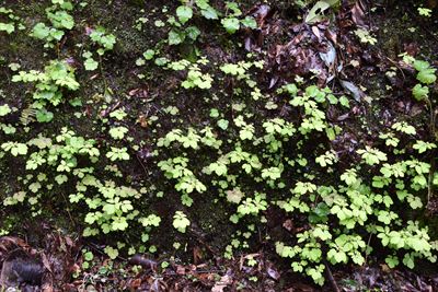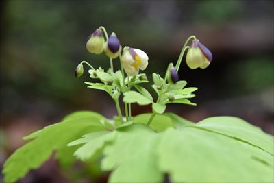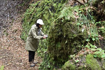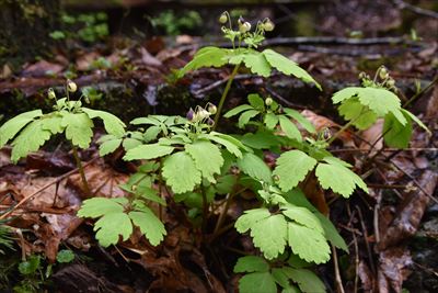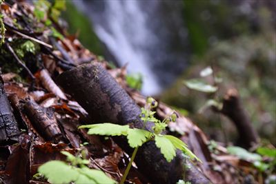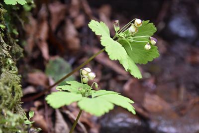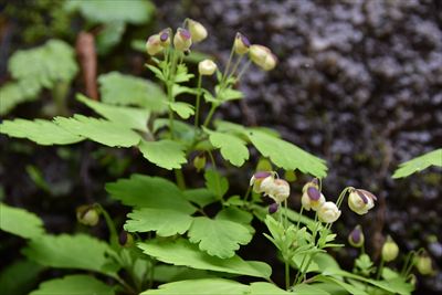 | アズマシロカネソウは奥の雄滝に登る階段の脇にも、登った先の岩にも咲いてます |