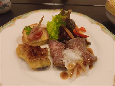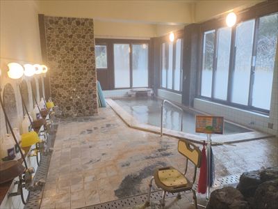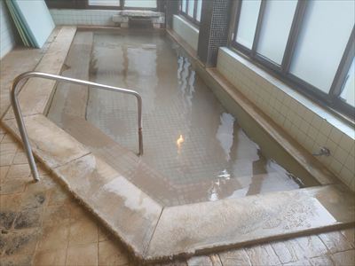 | 部屋の写真を撮り忘れたけど2階の「春華」、広い10畳ですがこれが標準(格安プランだと狭い部屋もあるようですが) 宿のHPには繋がる携帯はauのみとあり心配してましたがFree Wi-Fiがあり問題なし 夕食は18時の予約なので温泉へ、2種類の源泉が魅力 |
