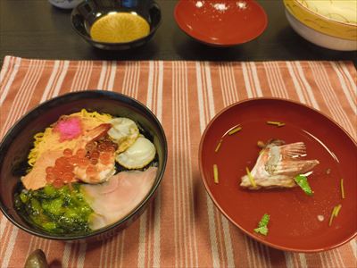 | 白飯のご飯が食べたかったけど、ちらし寿司でギブアップ... 品数の少ないプランでよかったかもね ⇒次の日に続く 2025/4/7(月)弥彦山 |